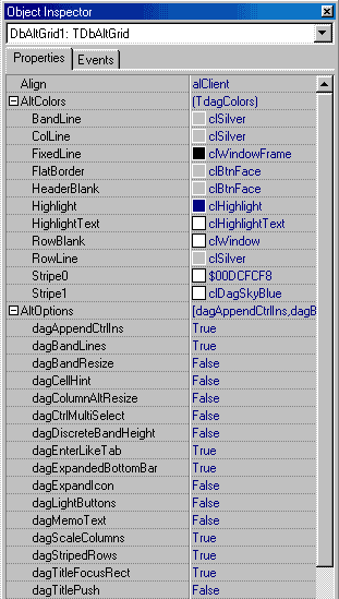 Новые свойства компонента DbAltGrid. |
