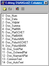 Что у нас имеется - 14 столбцов, имеющих отношение к платежным поручениям. Задача - вывести на ограниченном размерами окна компоненте DbAltGrid все столбцы.