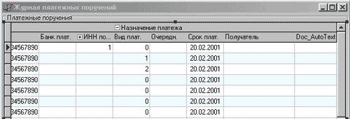 Пример 1 База "Платежные поручения". |